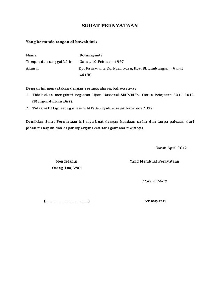 Anda dapat melihat dengan jelas contoh surat pernyataan.
